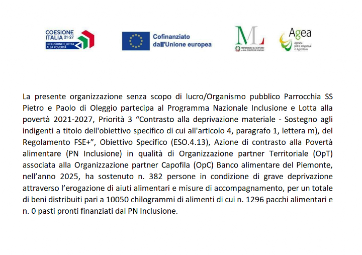 Sede legale: Piazza Bertotti, 1 - 28047 Oleggio - (c/o Ufficio Parrocchiale)